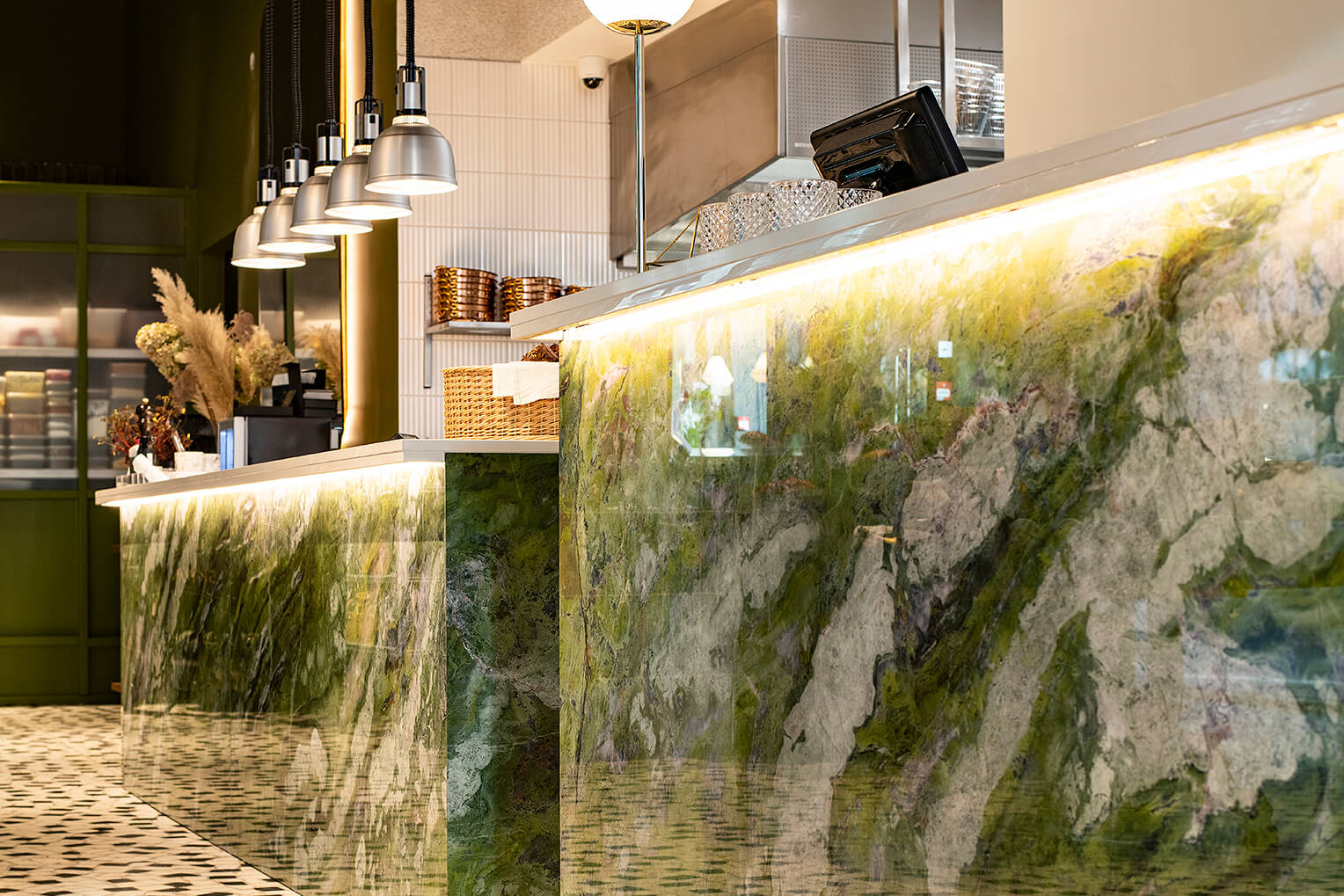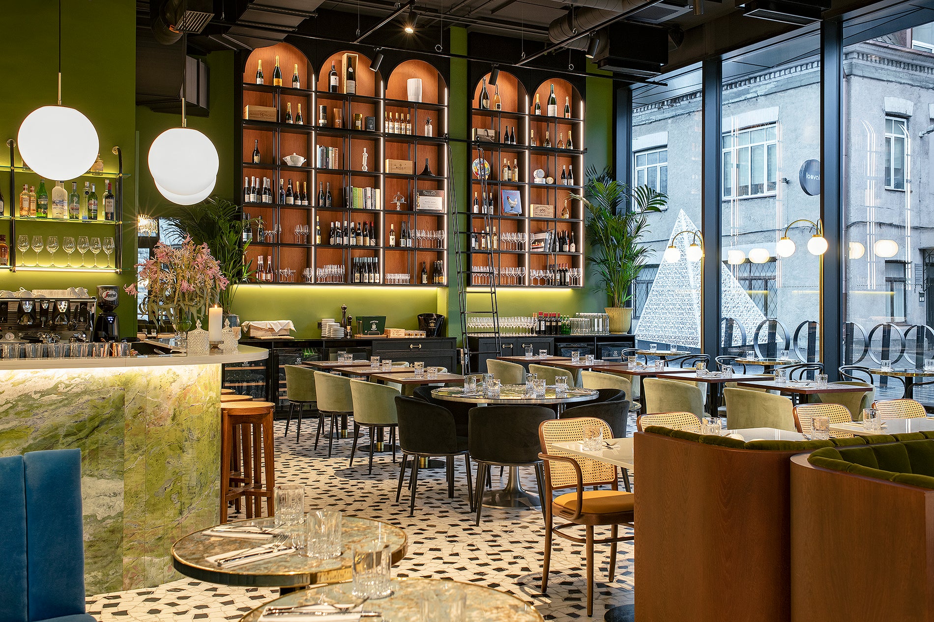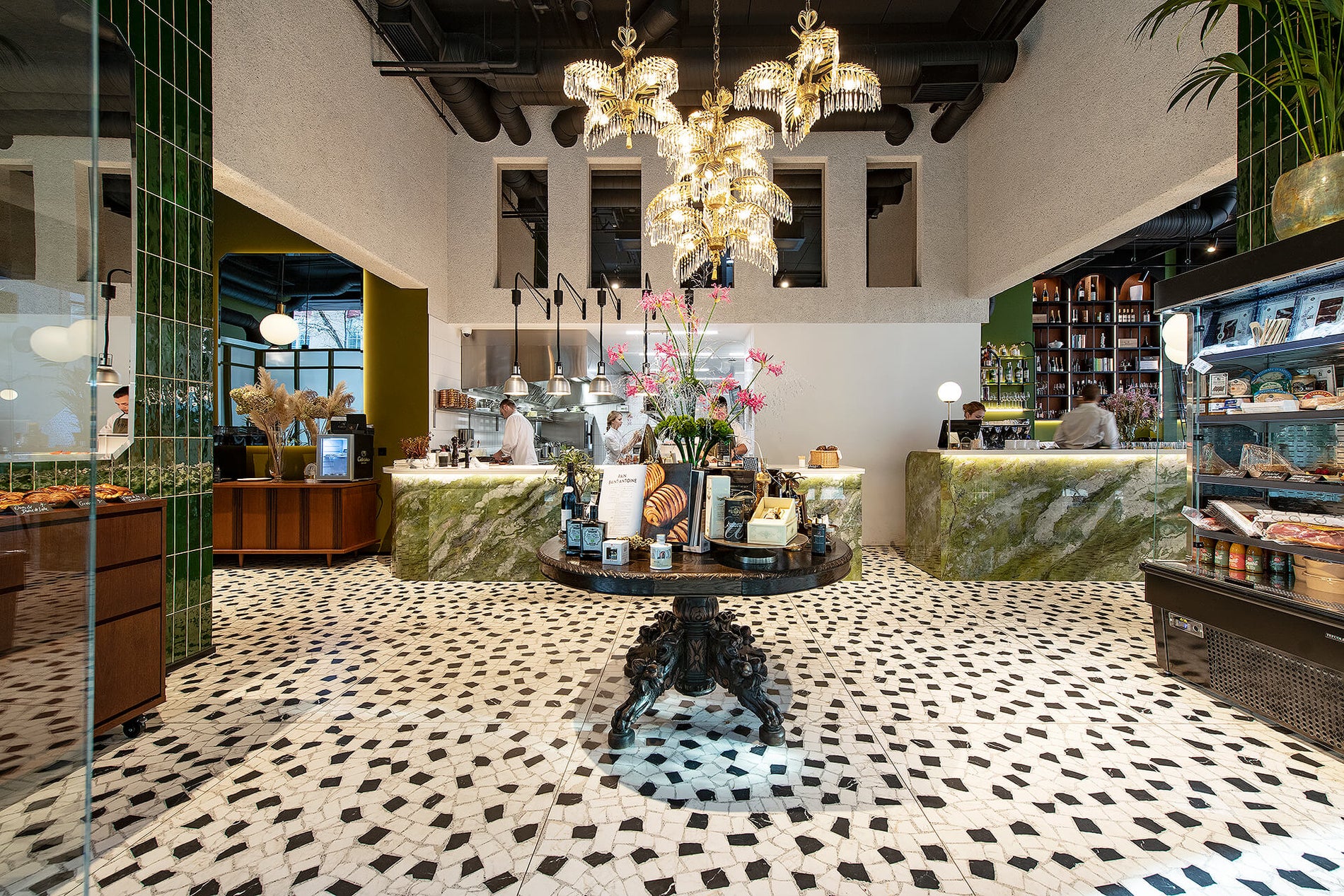 Artistic direction, atmosphere, furniture and interior design for Päris bakery-deli-restaurant at SKYON,